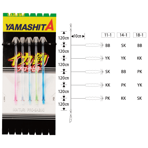 | 553-208 | KR鱿鱼钓组 14-1 5本 | 14cm 1段針 | 7.2m | 5号 10cm | 6号 120cm間 |