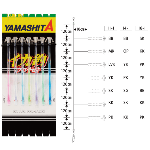 | 553-215 | KR鱿鱼钓组 14-1 7本 | 14cm 1段針 | 9.6m | 5号 10cm | 6号 120cm間 |