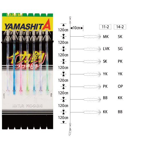 | 553-253 | KR鱿鱼钓组 14-2 7本 | 14cm 2段針 | 9.6m | 5号 10cm | 6号 120cm間 |
